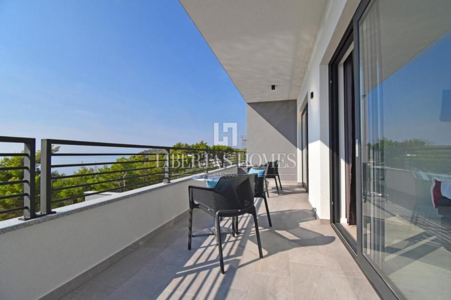 Unutarnjim stepeništem dolazi se na kat gdje su smještene još dvije spavaće sobe, svaka s en-suite kupaonicom i izlazom na terasu s panoramskim pogledom na more i okolne otoke.