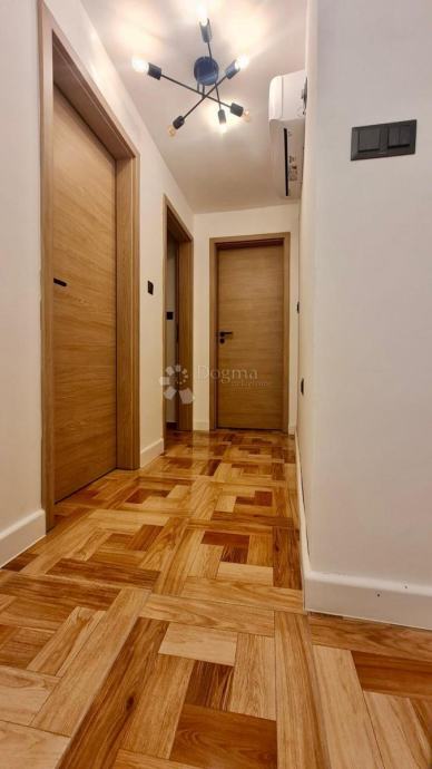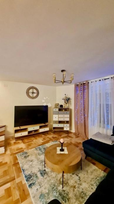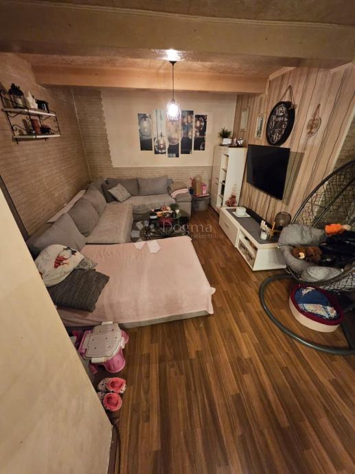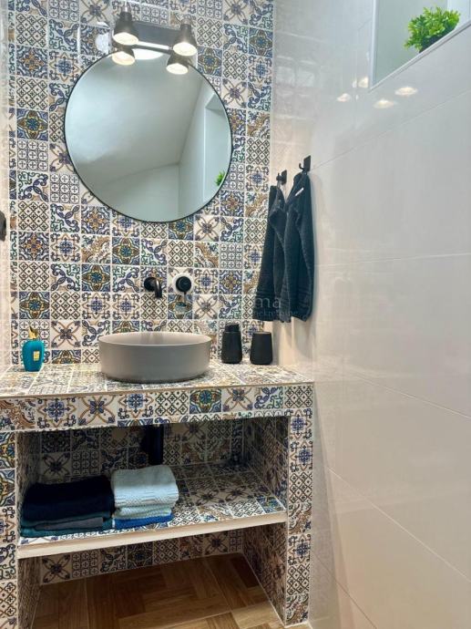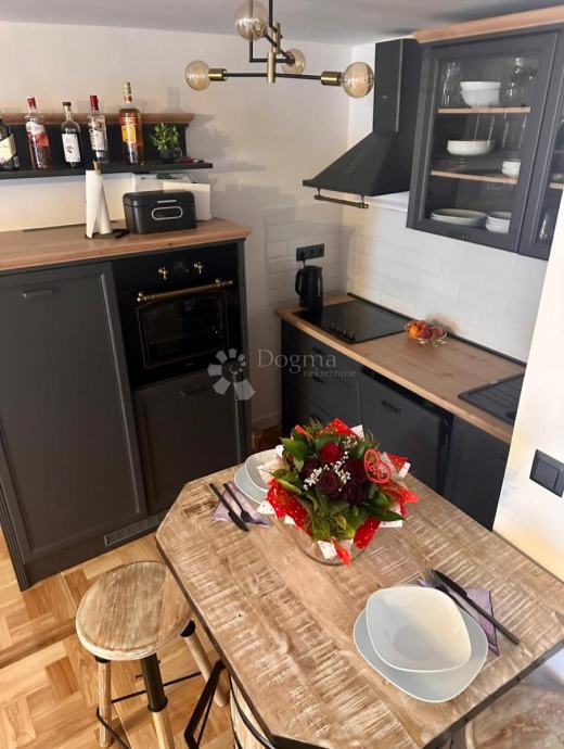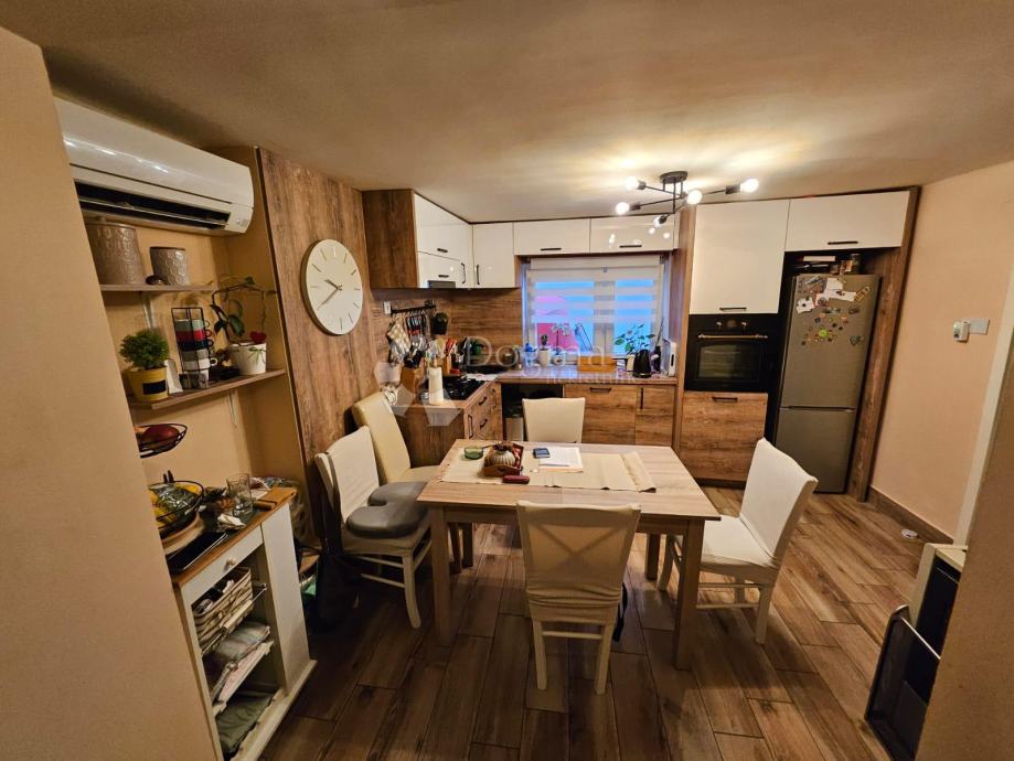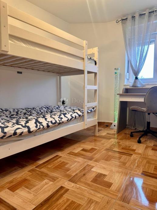 Moderan dnevni boravak otvorenog tipa sa blagovaonicom i kuhinjom nalazi se u prizemlju kuće . Na katu se nalaze dvije spavaće sobe i velika kupaonica.