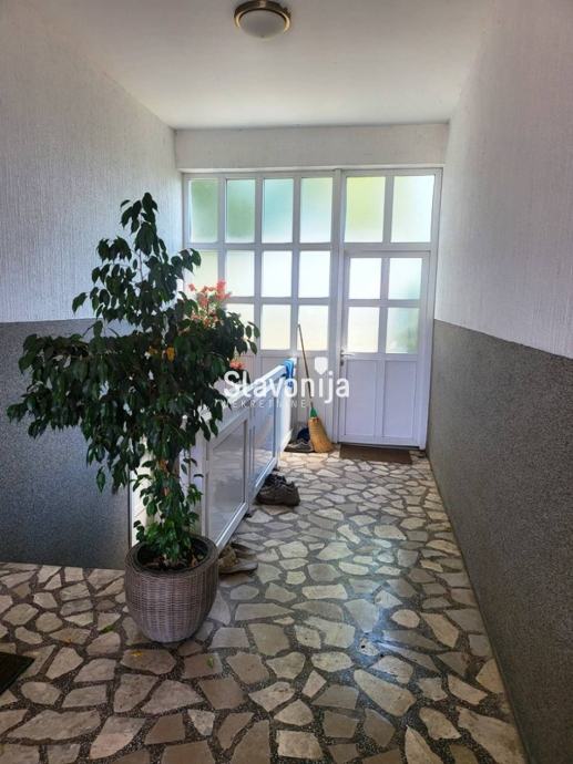 Između prve kuće pa sve do druge se nalaze garaže odnosno skladište cc 140m2.Iza se nalazi prostrana katnica koja se sastoji od zatvorenog hola iz kojeg se ulazi u podrum cc 15m2 kao i u kuću koja se sastoji od hodnika, kupaonice sa tuš kadom, sobe, balagavaonice , kuhinje i dnevnog boravka iz kojeg se izlazi na lijepo uređenu natkrivenu terasu i u dvorište. Na katu kuće nalazi se hodnik iz kojeg se izlazi na veću terasu sa koje se pruža lijep pogled na prirodu ali i na katedralu, u nastavku se nalaze tri spavaće sobe i kupaonica sa jacuzzi kadom. Ukupna površina kuće cc 210m2.Ukupna površina zemljišta iznosi 2653m2.