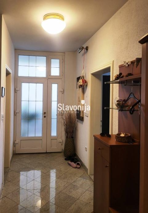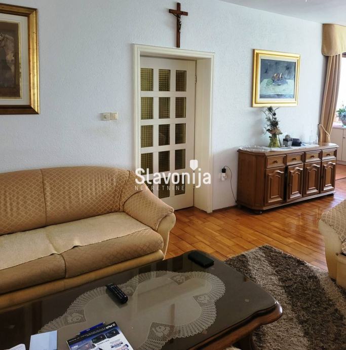 Na početku parcele se nalazi prva kuća prizemnica koja se sastoji od hodnika, dnevnog boravka, kupaonice,kuhinje , spavaće sobe i manjeg podruma.Kuća ima sve priključke a ukupne je površine 90m2.Kuća je u dobrom stanju građena 1964.godine.
