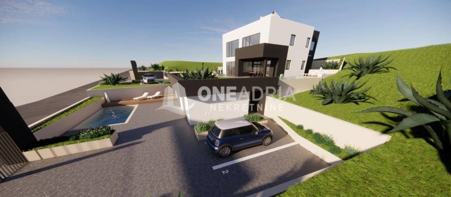 Projekt uključuje izgradnju bazena, uređeno dvorište, više vanjskih parkirnih mjesta i dodatne sadržaje za udoban život ili turističku namjenu.