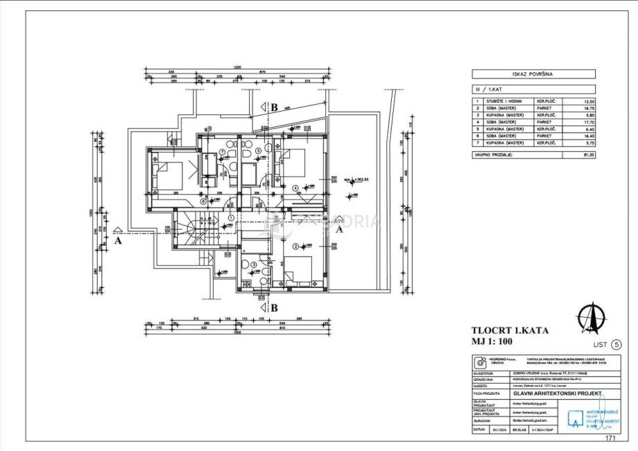 Prvog kata s tri velike spavaće sobe, svaka s vlastitom kupaonicom i pristupom ravnoj terasi koja se može dodatno urediti kao sunčalište ili lounge zona