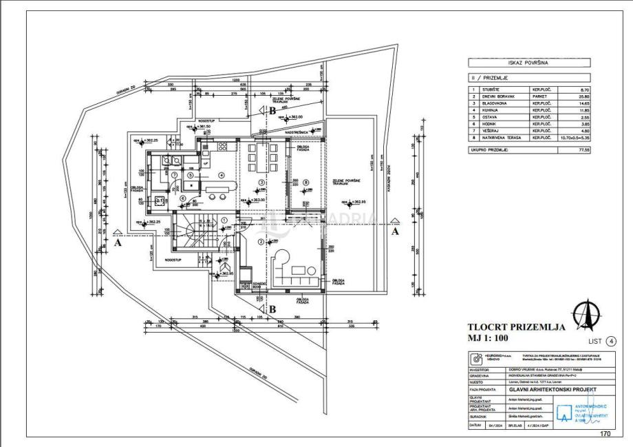 Prizemlja s prostranim dnevnim boravkom, kuhinjom, blagovaonicom i izlazom na veliku natkrivenu terasu s pogledom na more