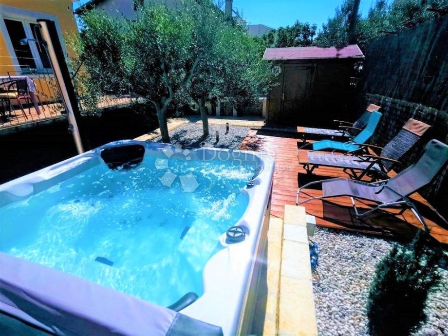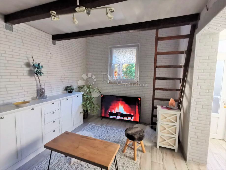 Manja kuća je površine 48 m2 a sastoji se od dnevnog boravka, kuhinje i blagovaone, kupaone, spavaće sobe u prizemlju te još jedne manje u galeriji. Što se opreme tiče i ova je klimatizirana, termo izolacija, i PVC stolarija kao neizostavni dio a također u obje se kuće naglasak vodi na sitnim detaljima koji ove ljepotice čini suvremenim i modernim kućama. Prednji dio kuće ima prekrasan drvored koji uz kameno opločenje dvorišta, mediteransko bilje i dva parkirna mjesta u kombinaciji sa lokacijom stvaraju idilično i mirno okruženje gdje je jedino potrebno opustiti se i uživati. U stražnjem dijelu kuće, skrivenom od pogleda, uz kameni roštilj, vrtnu kućicu, sunčalište, svoje mjesto našla je i hidro masažna kada koje je neizostavni dodatak svakog iskusnog hedonista.