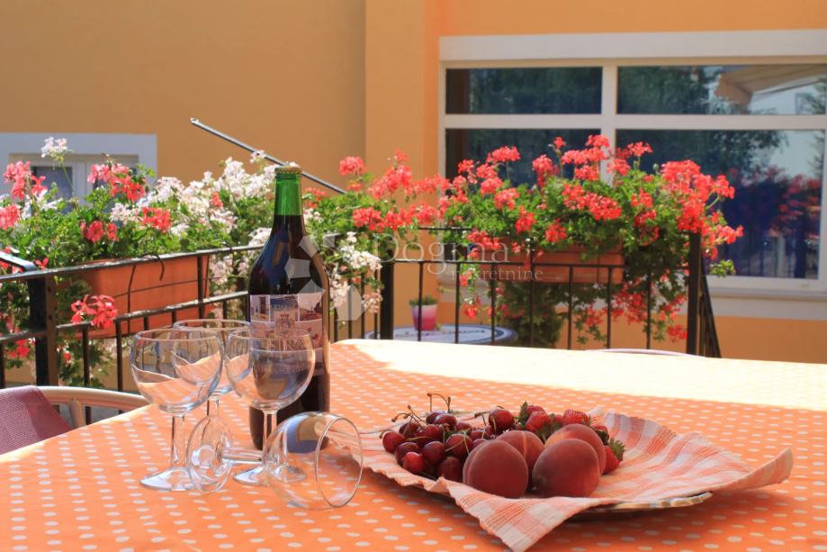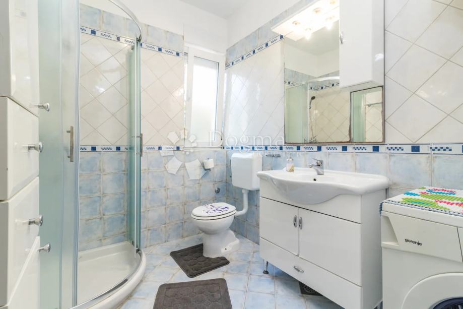 Veća kuća ukupne površine od 143 m2 sastoji se od dnevnog boravka, kuhinje sa blagovaonom, tri spavaće sobe, dvije kupaone i terase. Potkrovlje kuće, manjim zahvatom, može postati još jedan kat i postati dodatni stambeni prostor što stvara dodatnu vrijednost ovoj nekretnini. Kuća je kompletno klimatizirana a termo izolacija kuće i PVC stolarija potrebu za grijanjem i hlađenjem smanjuju na najmanju moguću razinu. Važno je naglasiti da kuća ima sustav video nadzora kojem je moguće pristupiti sa udaljene lokacije. Kuća je redovito popunjena tijekom ljetne sezone i poželjna je destinacija gostiju koji se u nju rado vraćaju.
