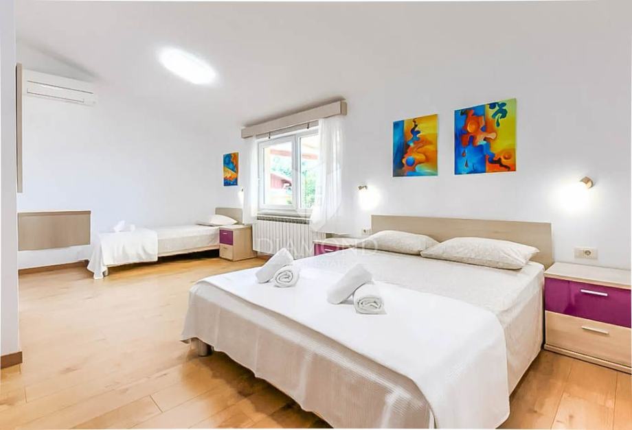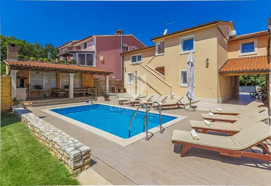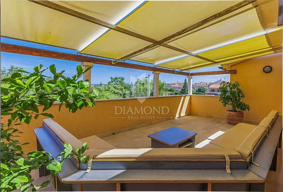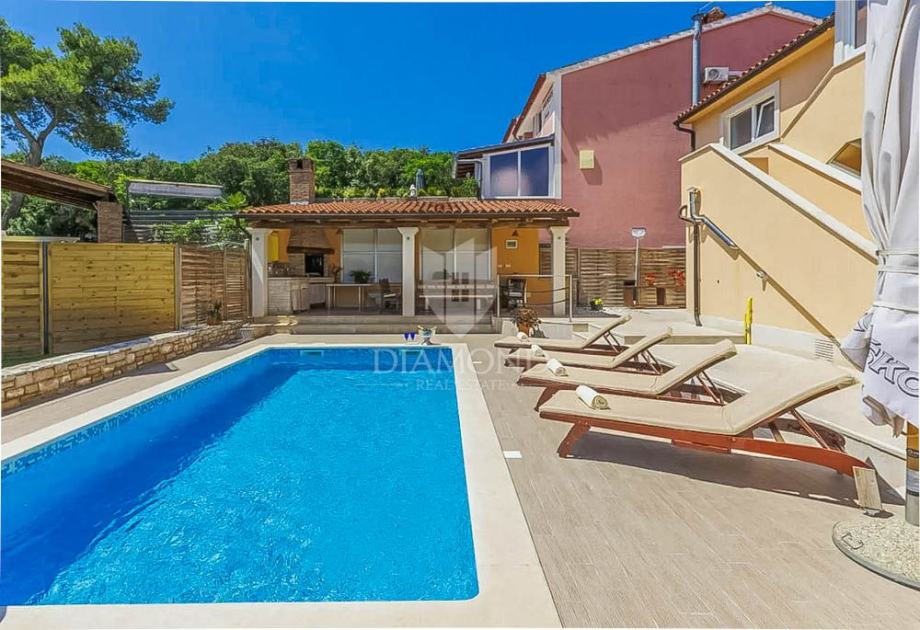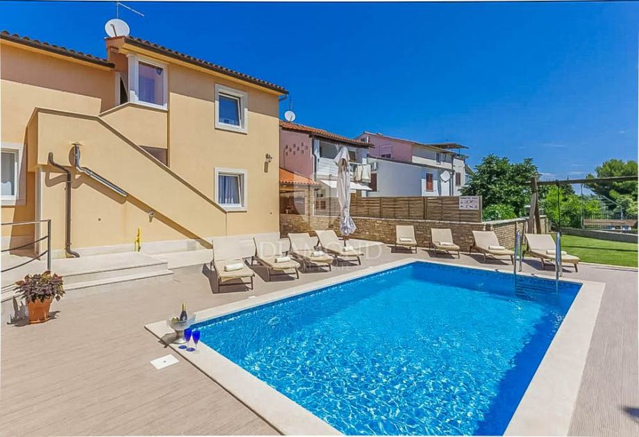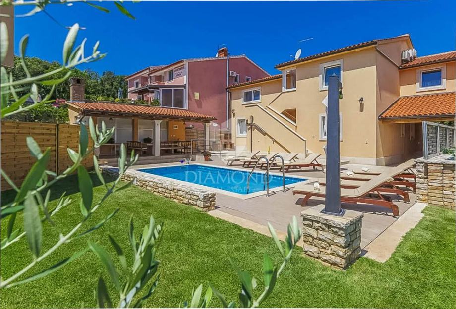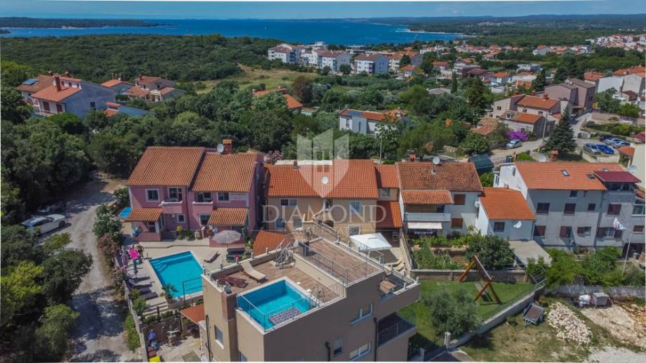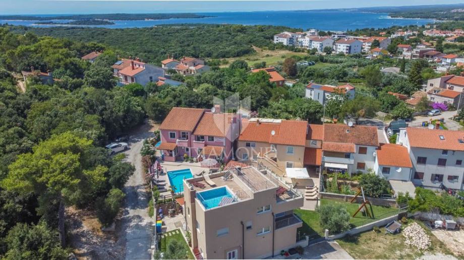 Ove dvije kuće smještene su na zemljištu od 1100m2 te se prostiru na 550m2. Prva kuća nalazi se u nizu te se sastoji od 6 prostranih spavaćih soba i prekrasnog otvorenog prostora sa kuhinjom dnevnim boravkom i blagovaonicom. Tu se također nalazi i teretana kao i prekrasna ljetna kuhinja sa bazenom i dvorištem. Druga kuća je pravi unikat. Osim što je dvorište ukrašeno raznim austrougarskim i rimskim kamenom, prava posebnost je bazen koji se nalazi na krovu kuće. Također krasi ju i činjenica da je to najviša kuća u Pulskoj okolici kao i prekrasan pogled na Pulu i more. Kuća se sastoji od konobe, otvorenog prostora koji dijele kuhinja dnevni boravak i blagovaonica te 3 spavaće sobe. Stepenicama dolazimo do krovne terase sa bazenom.