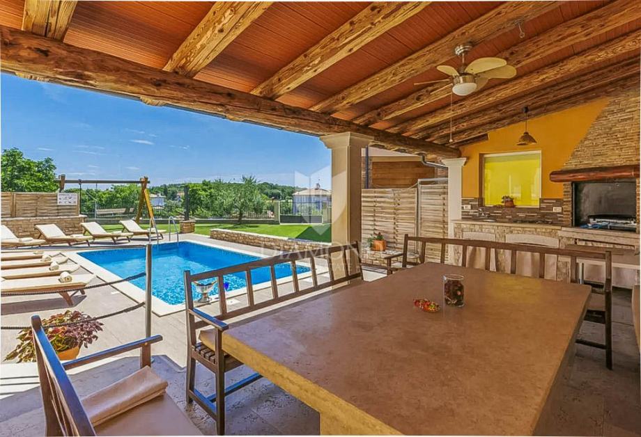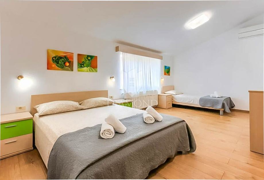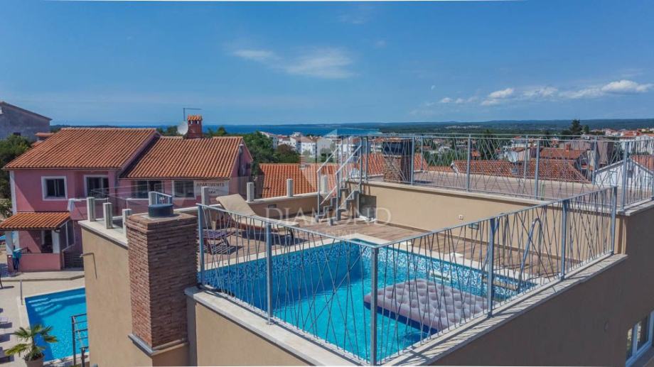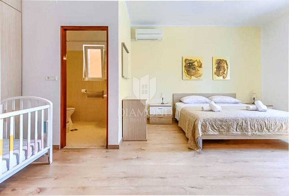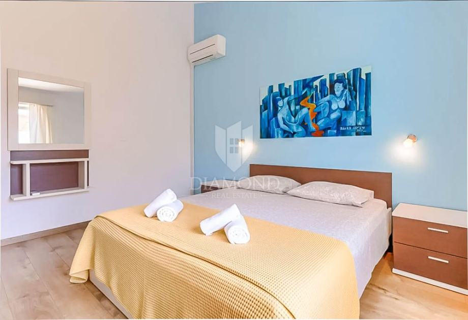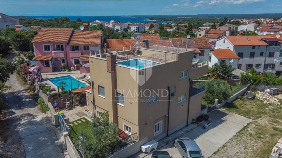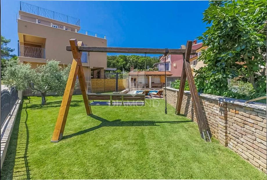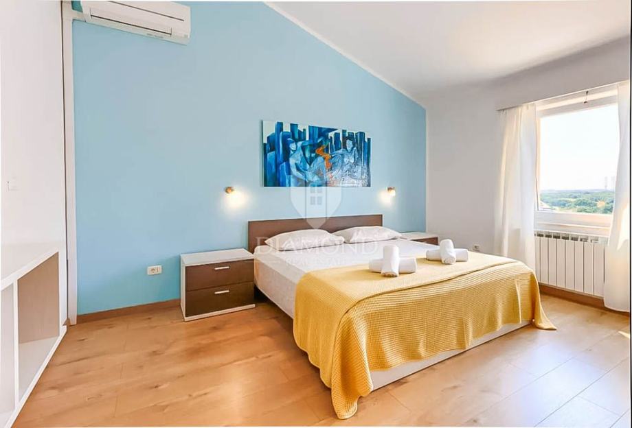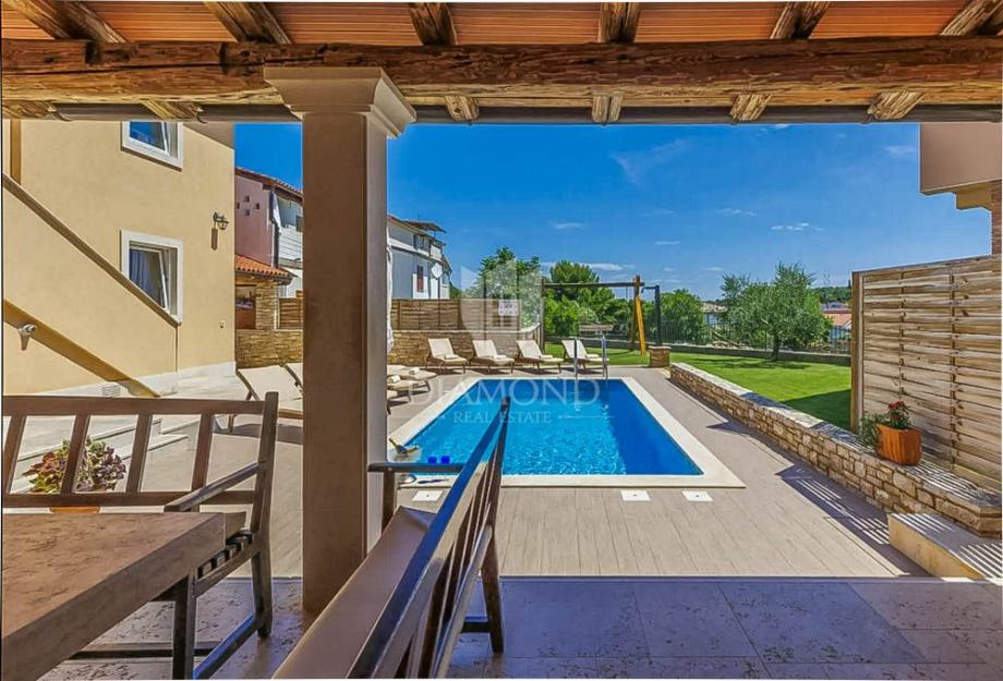 Ove dvije kuće smještene su na zemljištu od 1100m2 te se prostiru na 550m2. Prva kuća nalazi se u nizu te se sastoji od 6 prostranih spavaćih soba i prekrasnog otvorenog prostora sa kuhinjom dnevnim boravkom i blagovaonicom. Tu se također nalazi i teretana kao i prekrasna ljetna kuhinja sa bazenom i dvorištem. Druga kuća je pravi unikat. Osim što je dvorište ukrašeno raznim austrougarskim i rimskim kamenom, prava posebnost je bazen koji se nalazi na krovu kuće. Također krasi ju i činjenica da je to najviša kuća u Pulskoj okolici kao i prekrasan pogled na Pulu i more. Kuća se sastoji od konobe, otvorenog prostora koji dijele kuhinja dnevni boravak i blagovaonica te 3 spavaće sobe. Stepenicama dolazimo do krovne terase sa bazenom.