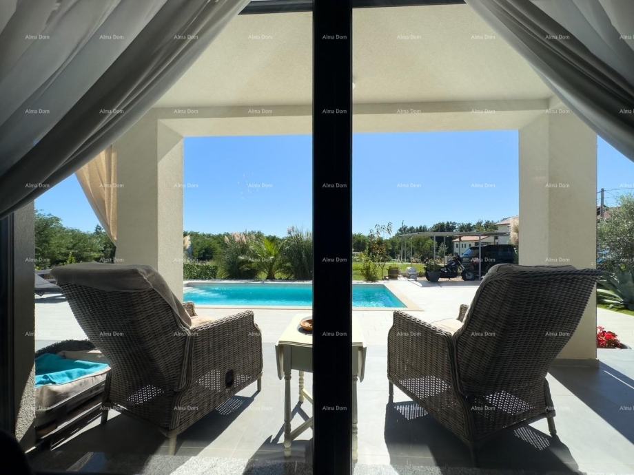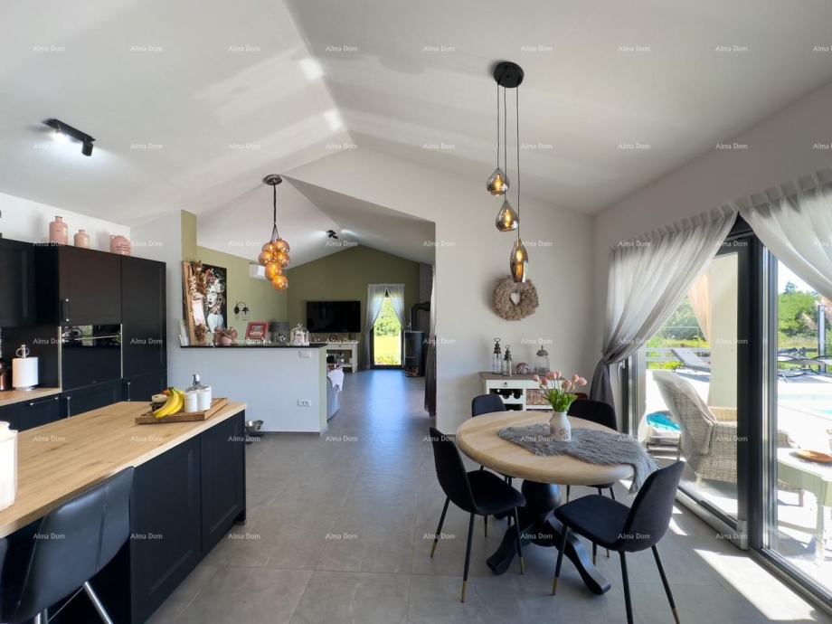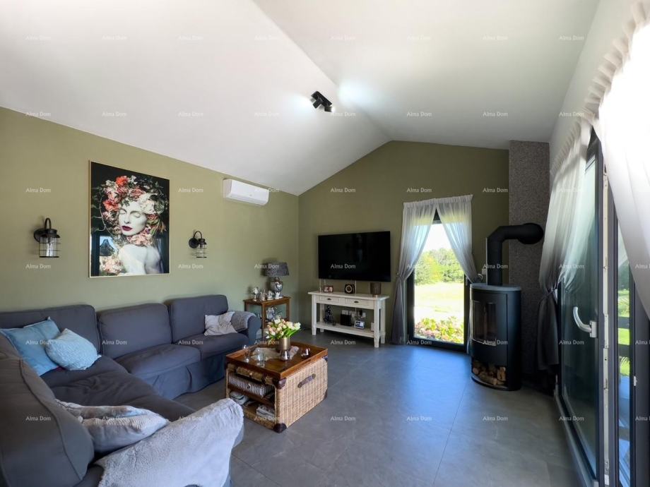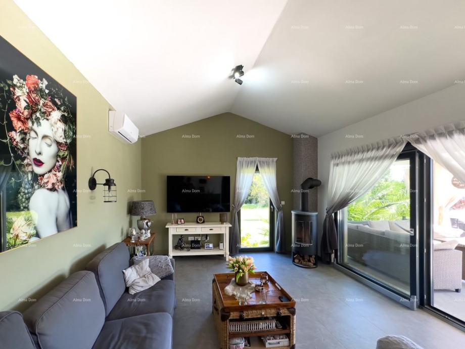 Podno grijanje, trostruko staklo, kamin, klima u svakoj sobi. Bazen sa elektrolizom, parking za više vozila.