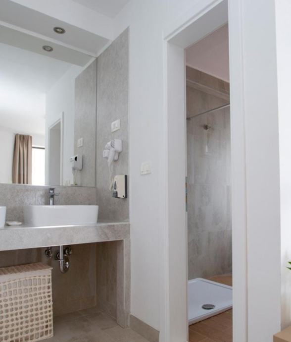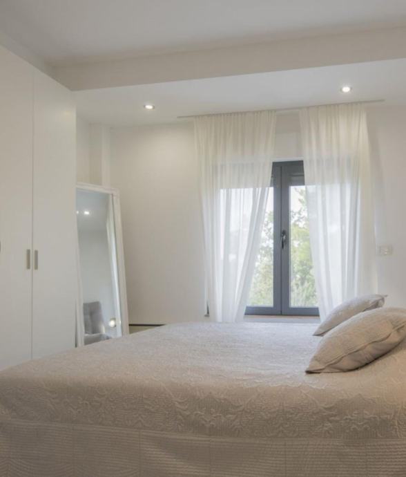 U prizemlju nalazimo prvu veliku spavaću sobu od njih ukupno 4 u vili, s vlastitom kupaonicom i garderobnim ormarom.