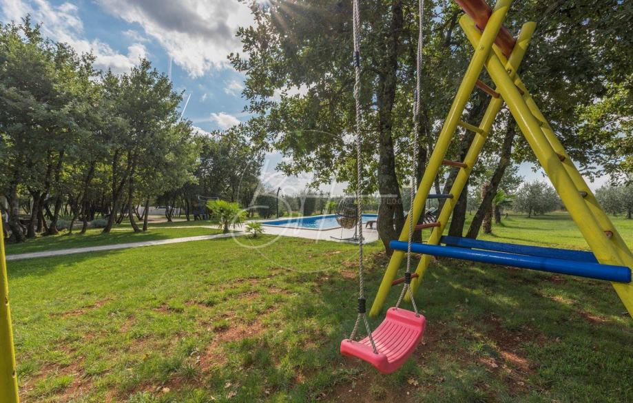 Na ograđenoj okućnici od 21 750 m je 5000 m2 uređeno na kojoj se nalazi bazen, roštilj i dječje igralište, ostatak je šuma.