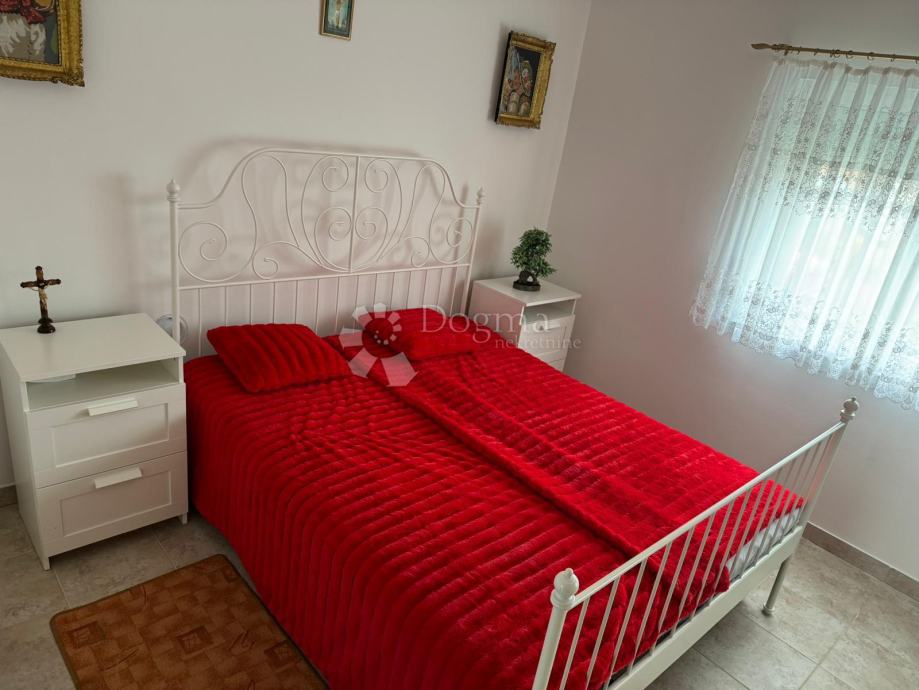 Prizemlje obuhvaća dvije spavaće sobe, kuhinju s blagovaonicom, dnevni boravak, hodnik i kupaonicu.