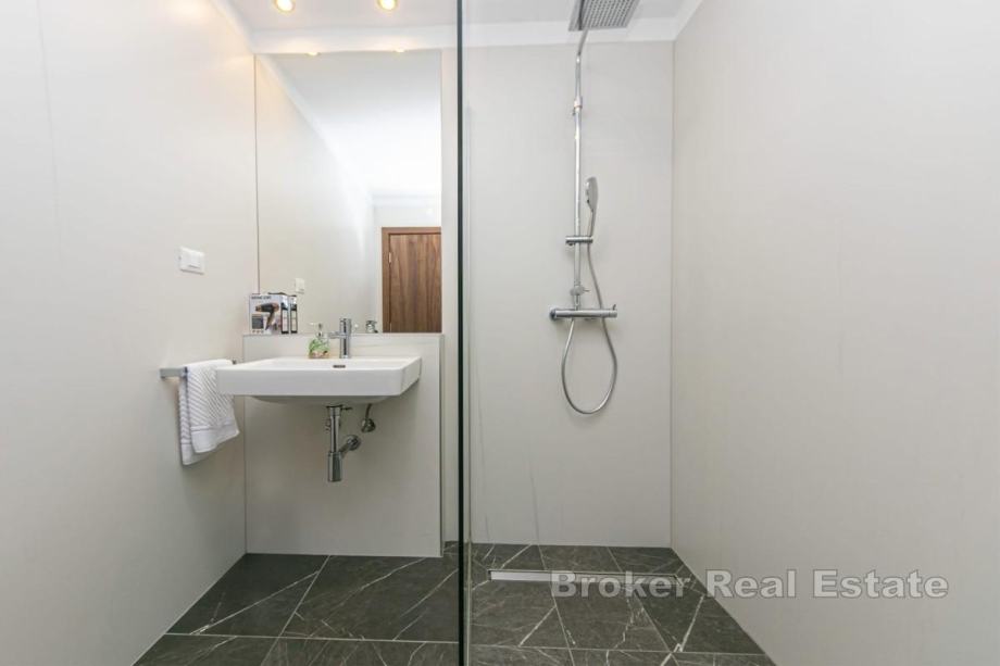 Lokacija u drugom redu od mora pruža idealne uvjete za dugoročno turističko iznajmljivanje ili ugodan, urban život u mirnom okruženju. Kompleks dodatno podiže kvalitetu života korištenjem lifta, grijanog bazena, saune, teretane te recepcijskog dijela.