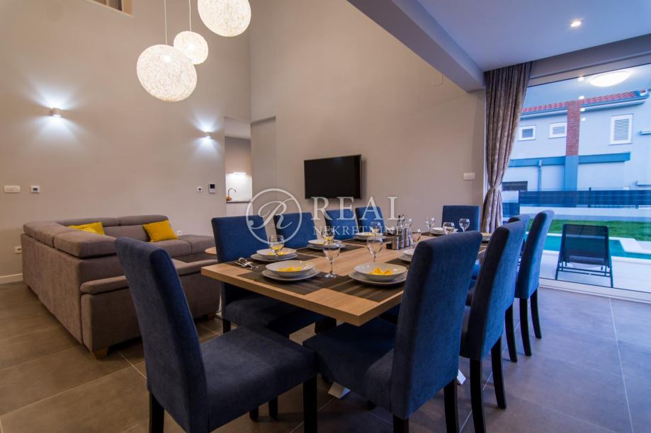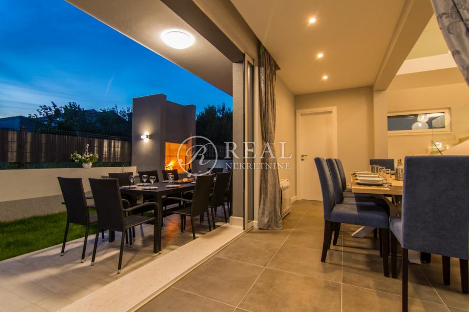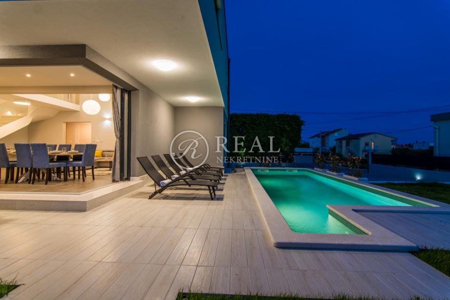 Svaka villa ima ukupno neto 202 m2, sa svojim luksuznim interijerom, otvorenom i natkrivenom terasom, bazenom, kaminom i vanjskim tušem sa prekrasnim njegovanim vrtom omogućava mir i opušten odmor.
