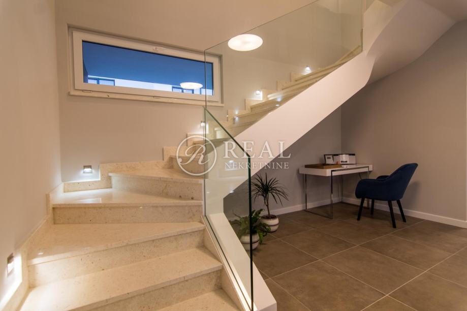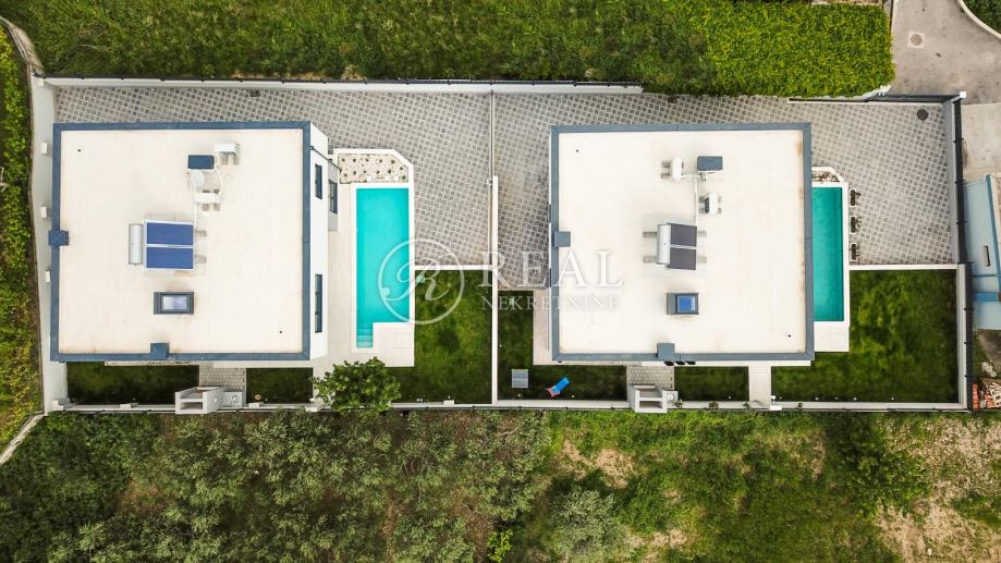 Vanjska i unutrašnja arhitektura villa oduševljavaju jednostavnošću i stilom, osmišljeno na dvije etaže koje su povezane unutarnjim stepenicama i centralnom galerijom sa ukupno 5 spavaćih soba i 5 kupatila.