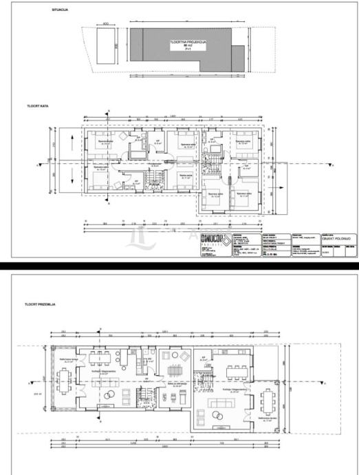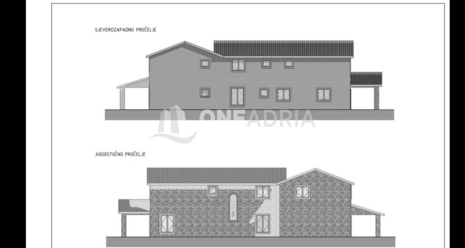 Prva kuća sastoji se od 5 soba, playrooma, prostrane kuhinje, sa izlazom na terasu gdje se nalazi bazen od cca 50m2!!