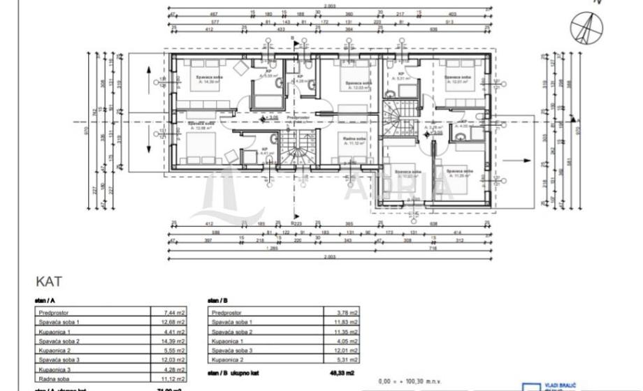 Druga kuća je površine 150m2 sastoji se od 3 sobe, 3 kupaonice, kuhinje, dnevnog boravka!