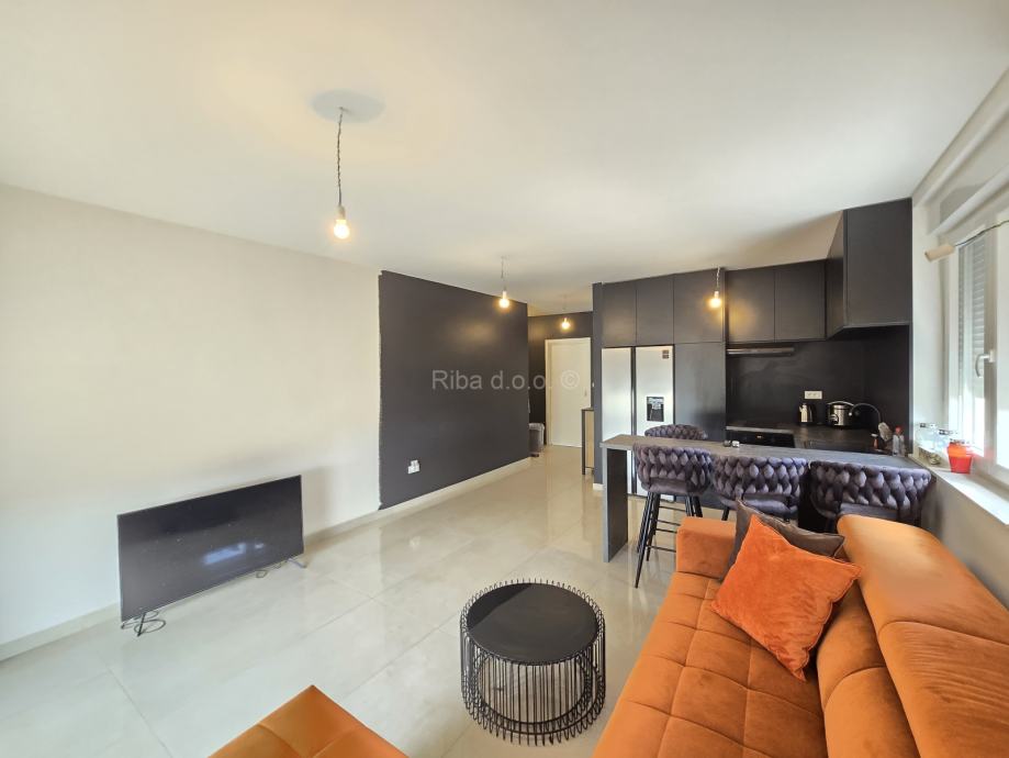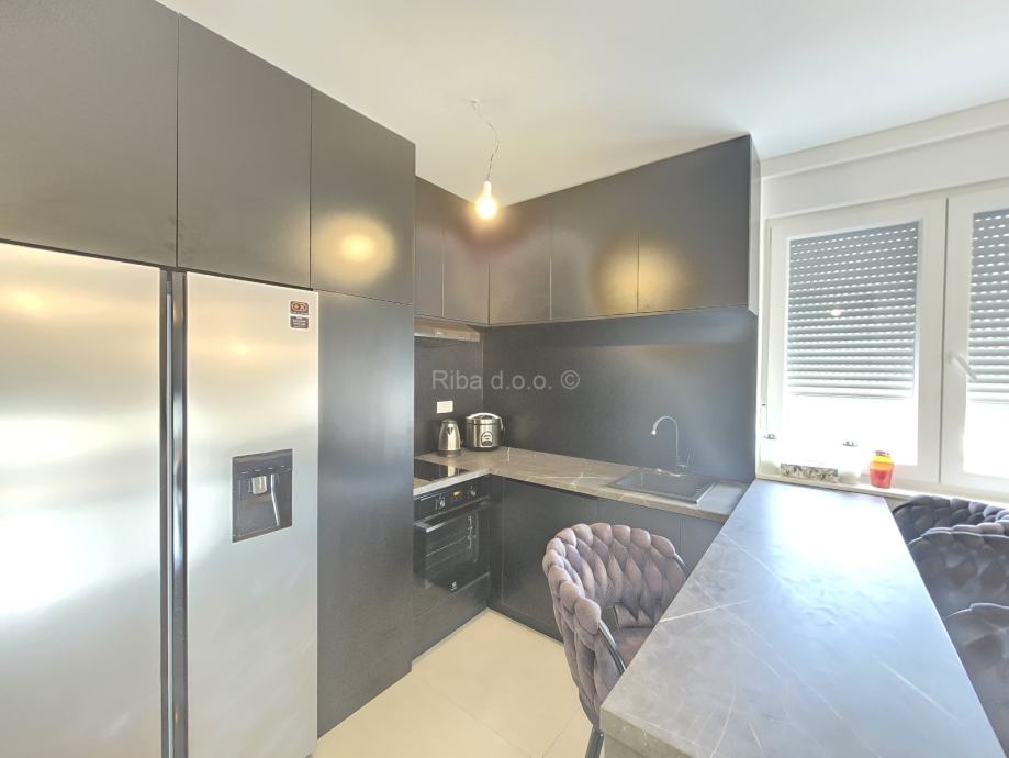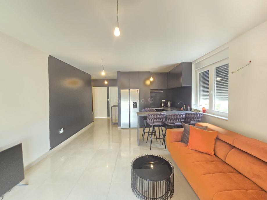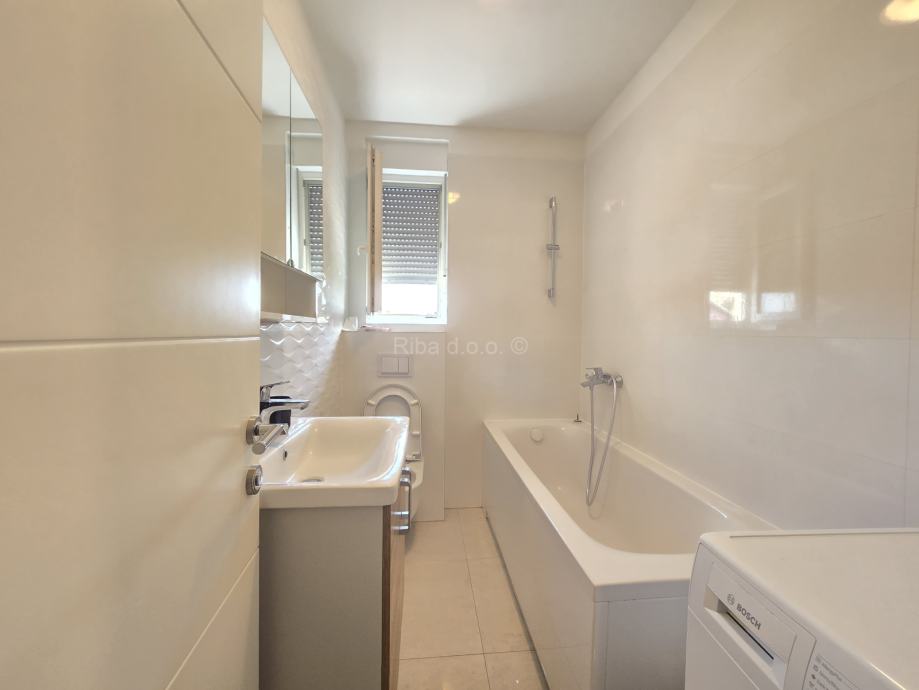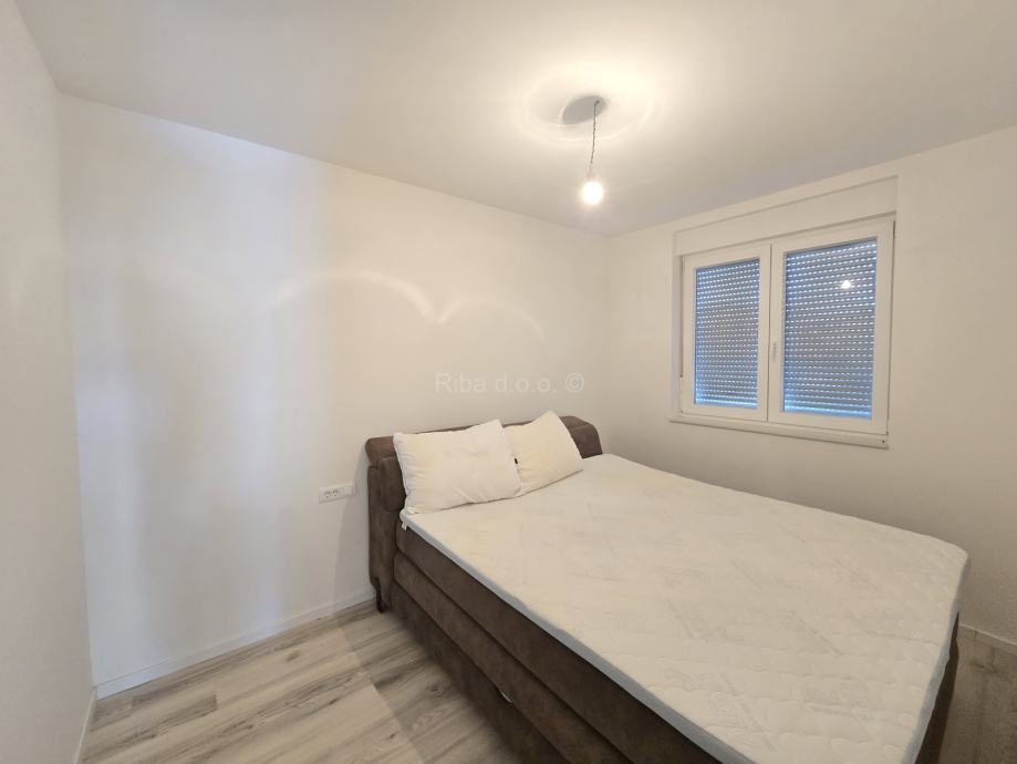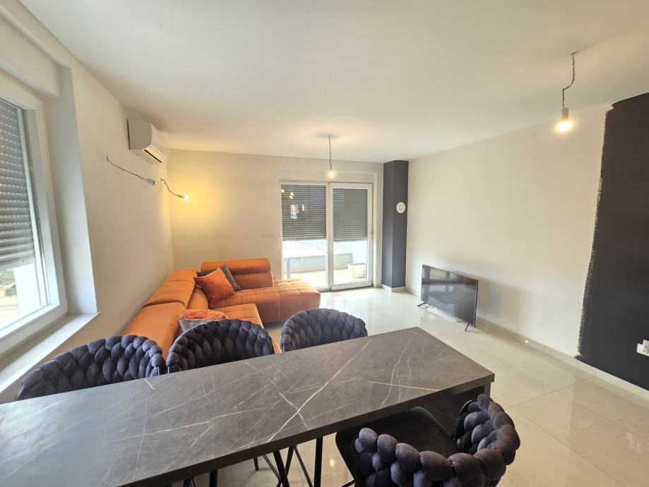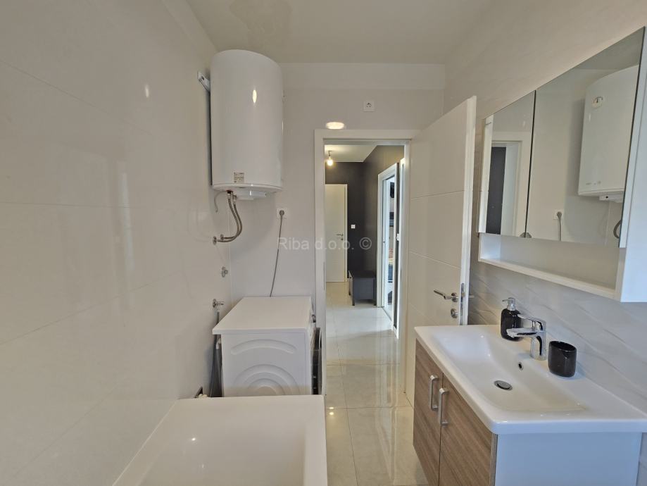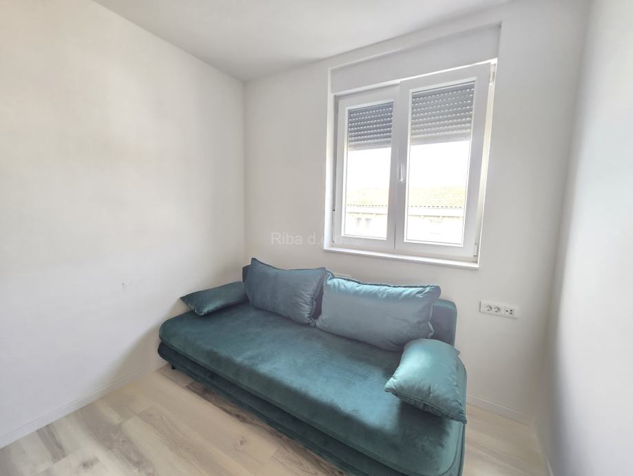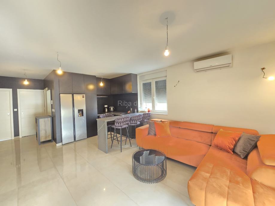 Novogradnja na Bilom Brigu s pogledom na cijeli grad i more. Stambena površina stana je 61m2 te mu još pripadaju krovna terasa od 100m2 i dva parkirna mjesta. Stan se sastoji od dvije spavaće sobe, kupaonice, kuhinje, dnevnog boravka i loggie.
