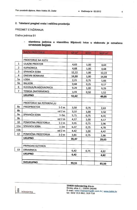 Orijentacija stana je JUG – SJEVER (osunčan i okružen zelenilom). Brutto pov. stana iznosi 93.50 m2 (neto 83.50 m2), a u naravi oko 103 m2.