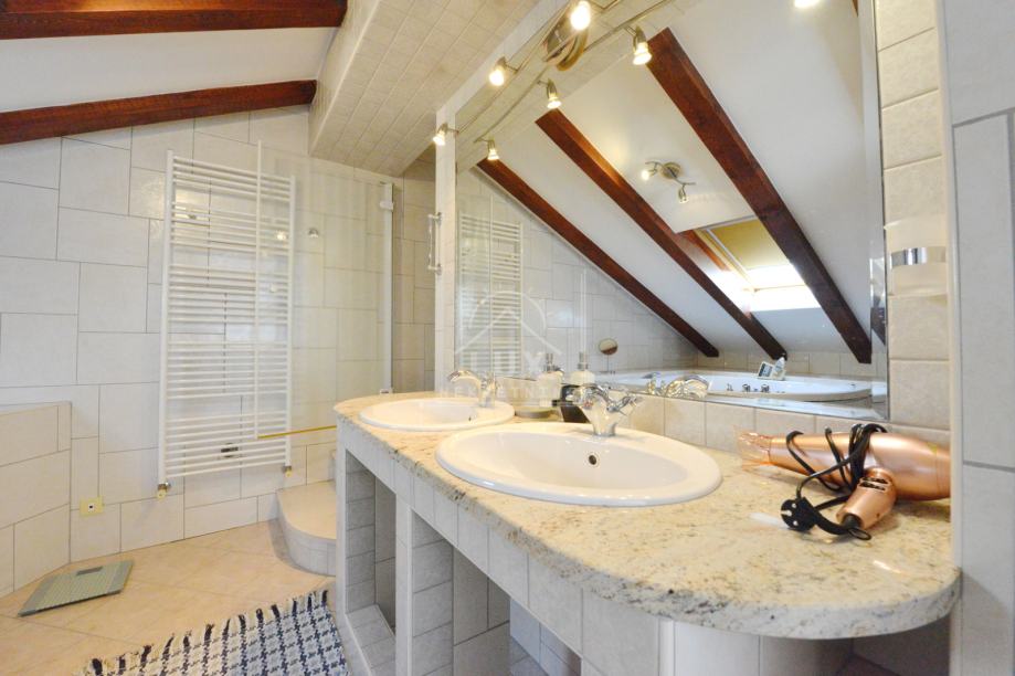 Nalazi se na 4. katu i potkrovlju zgrade s liftom, a sadrži: na 1. etaži ulazni prostor (pov. 4.09 m2), dnevni boravak s blagovaonicom (pov. 26.26 m2), kuhinju (pov. 7.37 m2), dvije spavaće sobe (pov. 9.74 m2 i 7.39 m2), kupaonicu s WC-om (pov. 4.76 m2) i balkon (pov. 3.07 m2).