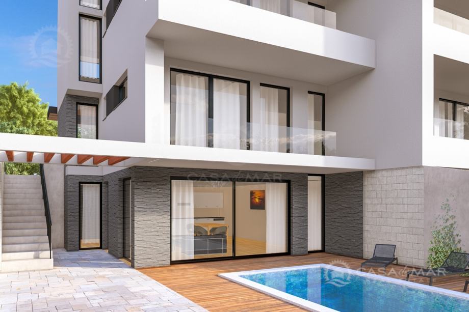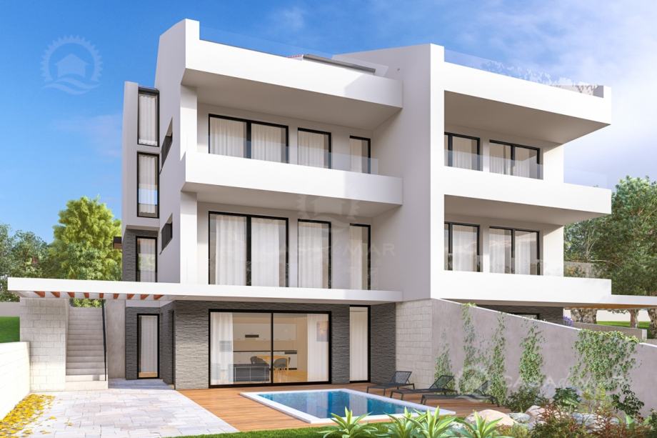 Uživajte u luksuzu i udobnosti u ovom predivnom dvoetažnom apartmanu smještenom na samo 300 metara od mora.