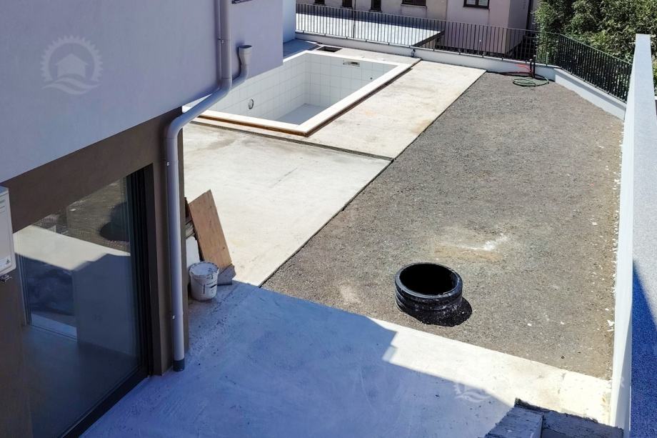 Prostorna okućnica od 200 m² idealna je za uživanje na otvorenom, te ima bazen sa sunčalištem. Nekretnini pripadaju i dva parkirna mjesta s pripremom za elektro punjač za električna vozila.
