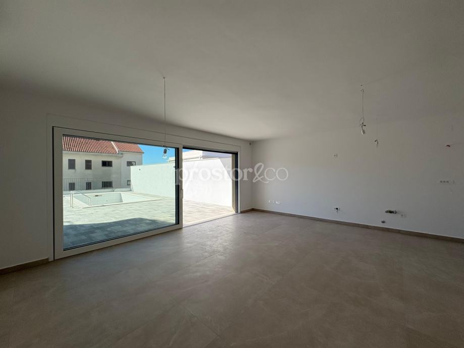 Riječ je o prostranom stanu koji se proteže kroz suteren i prizemlje te obuhvaća 127,33 m² unutarnje stambene površine. Zajedno s natkrivenim terasama i parkirnim mjestima ukupna površina iznosi približno 167 m², dok mu dodatnu vrijednost daje vlastita okućnica površine oko 179 m² s privatnim bazenom dimenzija 6 x 3 metra. Bazen je izveden, a u dogovoru s prodavateljem preostaje ugradnja sustava automatike za doziranje kemikalija.
