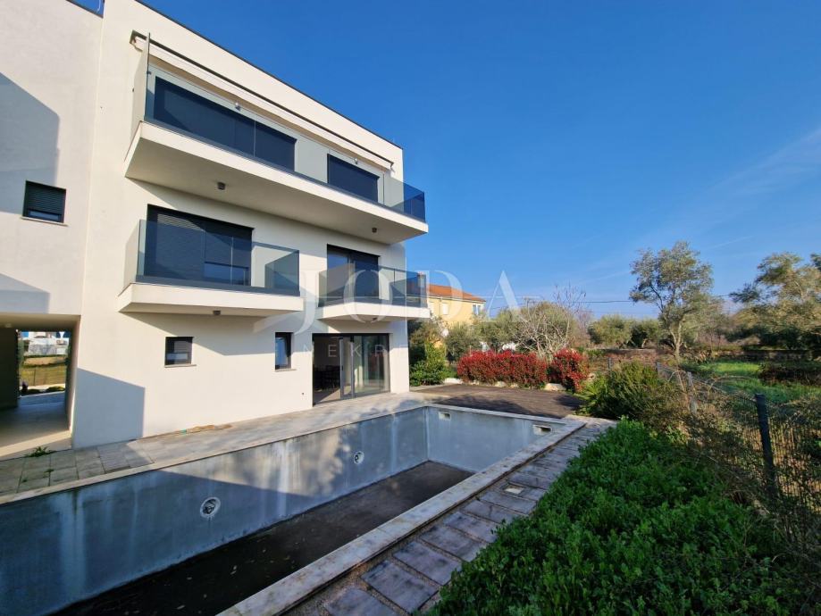 Ukupnu kvadraturu čini 156 m2 stambenog prostora, 15 m2 balkona, parkirno mjesto od 12,50 m2, bazen od 38 m2 te okućnica od 133 m2.