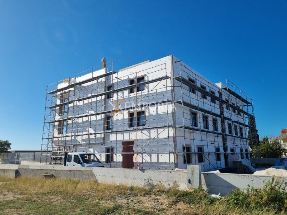 Ističemo da se ovaj stan prodaje preko firme i stoga kupac nema trošak poreza na promet nekretninama.OpremaGradnja zgrade je ciglenim termoblokom s termoizolacijom fasade debljine 10 cm stiropor. Podne obloge su pločice i parket. Prozori su PVC, troslojni, s električnim roletama i komarnicima. U dnevnom boravku bit će instalirana stropna klima, a klima uređaji bit će postavljeni i u spavaćim sobama. Grijanje je podno električno u cijelom stanu, osim u sobama. Nadalje, ulazna vrata stana su protuprovalna i protupožarna.