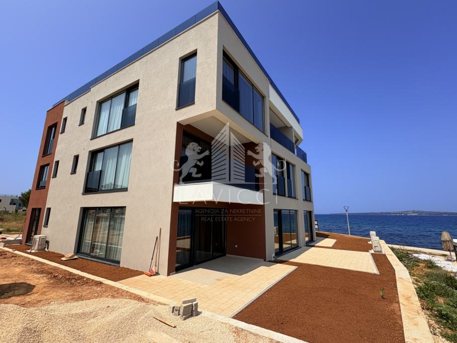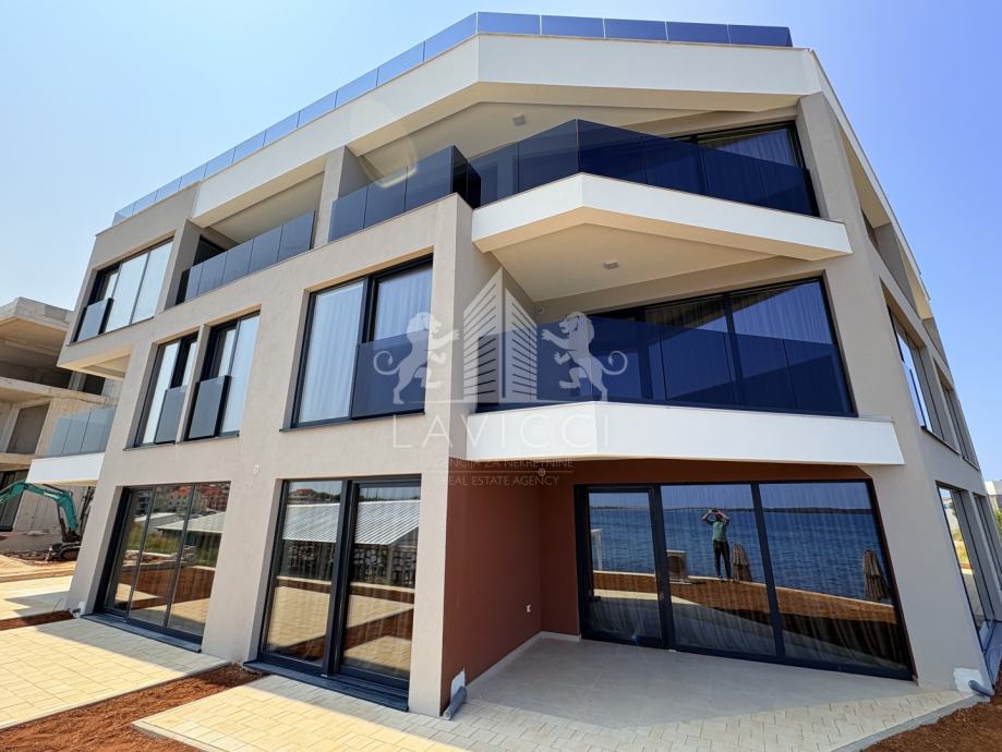 Apartman je smješten u ekskluzivnom projektu novogradnje koja je smještena u prvom redu do mora, na jednoj od najatraktivnijih lokacija u Privlaci. Moderna novogradnja predstavlja spoj elegancije i luksuza, udaljena svega nekoliko koraka od mora, te svega deset minuta šetnje Vas dijeli od centra sa svim potrebnim sadržajima.