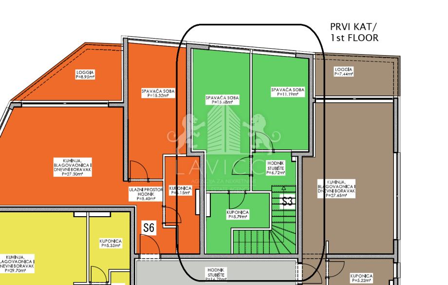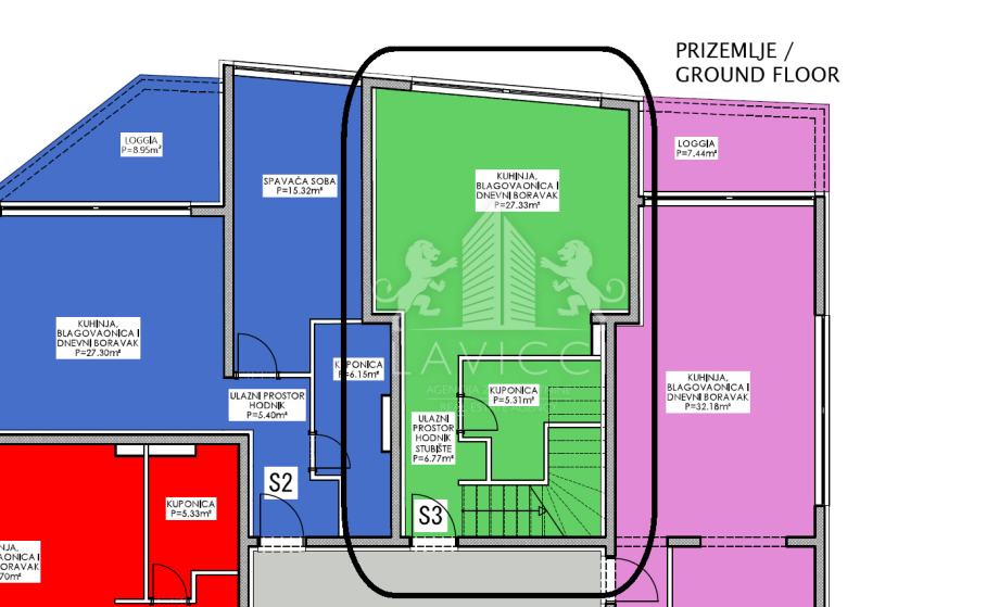 Apartman oznake S3 površine 78,79 m2 smješten je u prizemlju i na prvom katu zgrade te nudi puno prostora za komforan i opušten život.