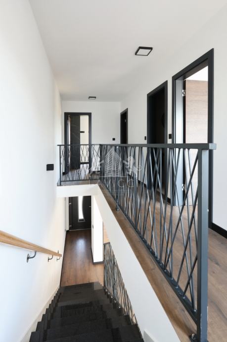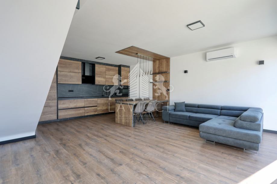 Na katu se nalaze tri udobne spavaće sobe te dodatna kupaonica s toaletom. Cijeli apartman je pažljivo uređen i opremljen kvalitetnim namještajem i svim potrebnim aparatima, tako da je odmah spreman za useljenje bez dodatnih ulaganja.