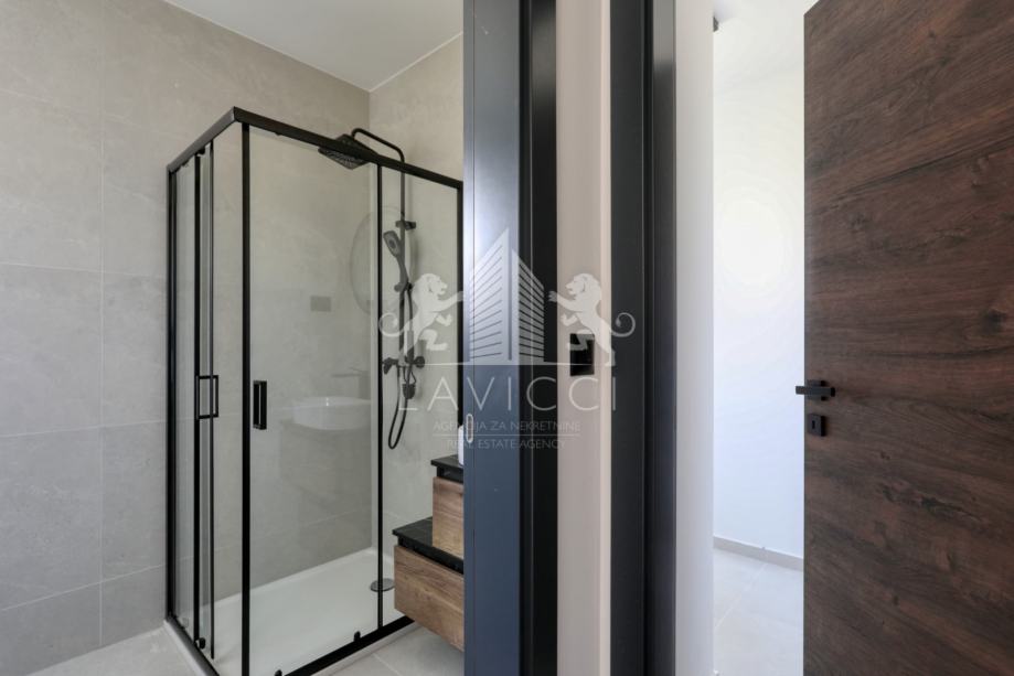 Posebna pažnja posvećena je kvaliteti gradnje i energetskoj učinkovitosti. Apartman ima A+ energetski razred, podno grijanje u svim prostorijama, grafitnu fasadu debljine 12 cm, vanjsku ALU stolariju s troslojnim staklom sa zaštitom od pogleda, kliznim stijenama i komarnicima, protuprovalna ulazna vrata te dekorativnu LED rasvjetu. Osigurana su dva parkirna mjesta ispred objekta, dok se dodatno mjesto može osigurati prema potrebi.