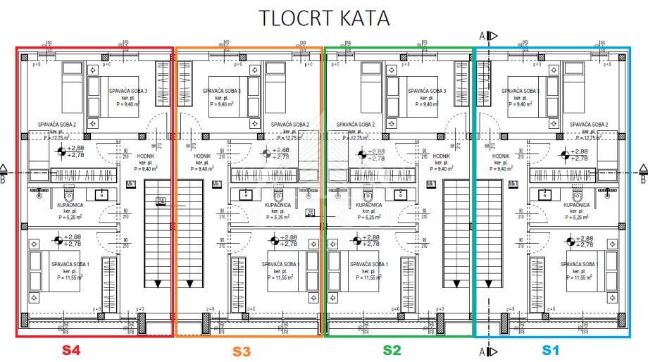 Stambena jedinica S1 ima vlastiti natkriveni ulaz i proteže se na dvije etaže ukupne površine 100,90 m².