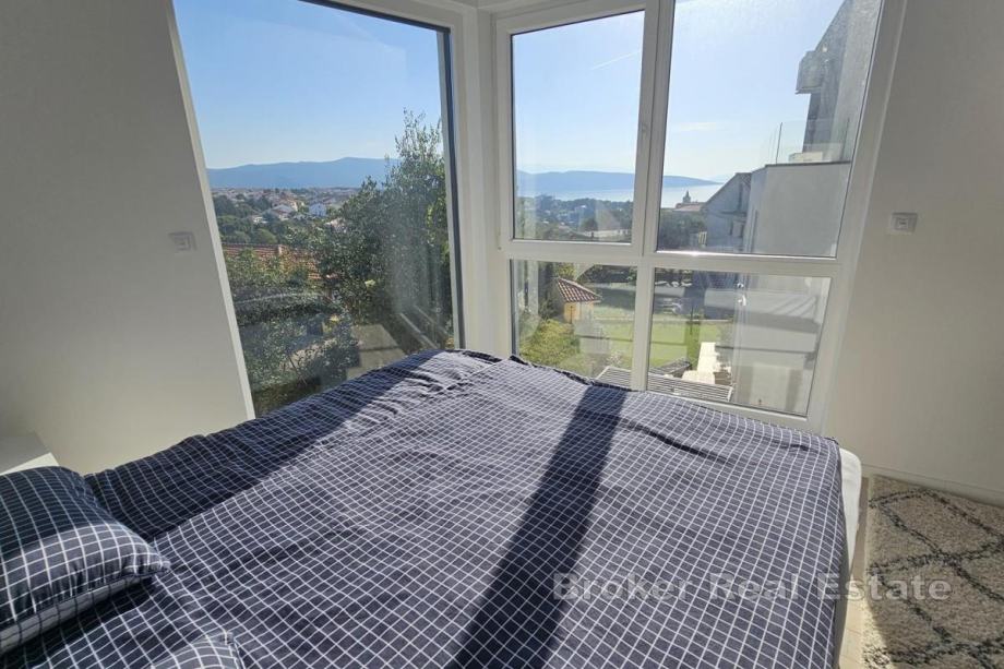 Na prodaju je dvoetažni apartman u prizemlju i na prvom katu višeobiteljske kuće u gradu Krku, udaljen 650 metara od mora i plaže.