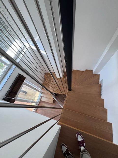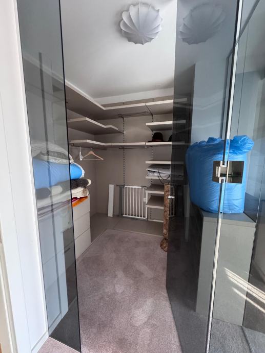 Stan se prostire na dvije etaže, direktno je povezan dizalom i stepeništem, a sastoji se od dnevnog boravka+blagovaonice, izbe, kuhinje, kupaonice i hodnika na prvoj etaži te stubišta, hodnika, kupaonice, spavaće sobe, garderobe, dječje sobe i radne sobe na drugoj etaži.