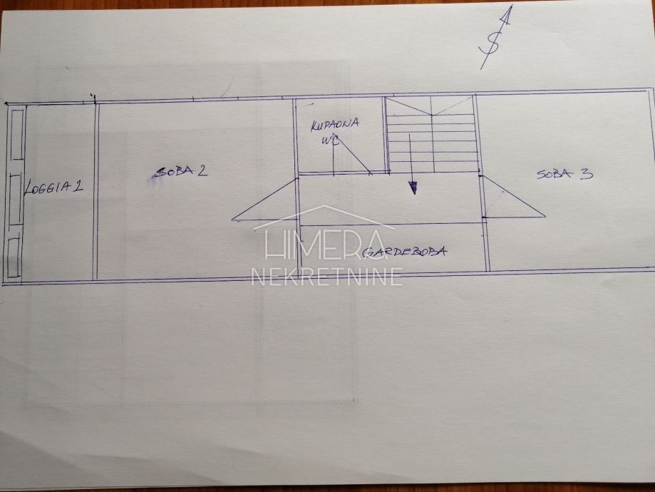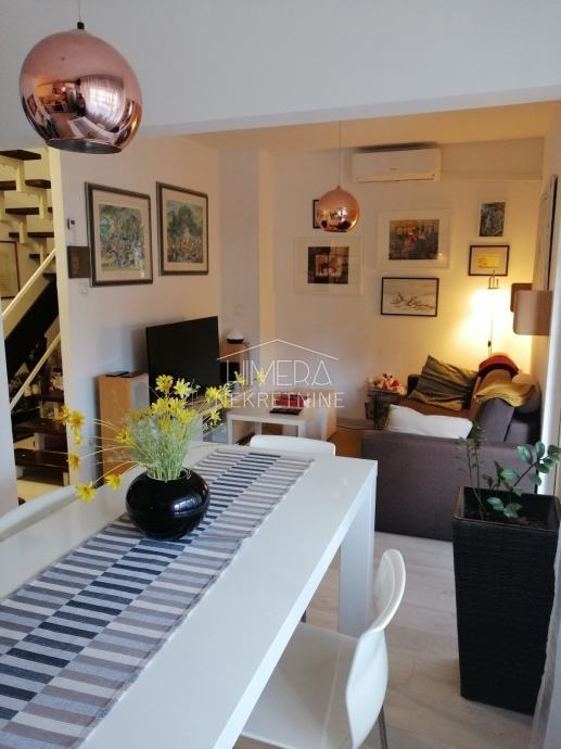 Prva etaža sastoji se od ulaznog hodnika, zasebnog WC-a, kuhinje s blagovaonicom, dnevnog boravka, jedne sobe i lođe. Na drugoj etaži nalaze se hodnik, garderoba, kupaonica s WC-om, dvije spavaće sobe i dodatna lođa, što stan čini izuzetno funkcionalnim za obiteljski život.