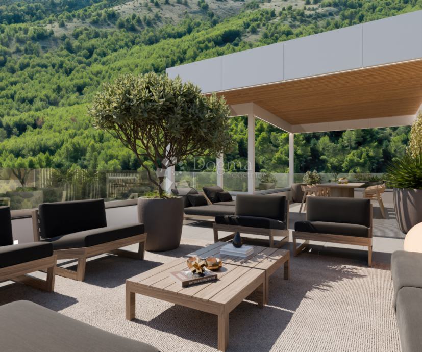 Arbanija - Novogradnja, dvoetažni penthouse s krovnom terasom i bazenom (P3-A5).