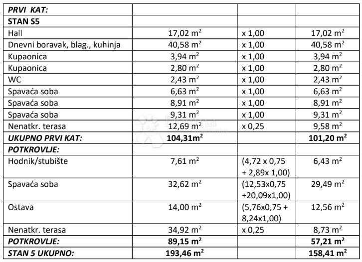 Netto površina stambenog prostora je 152,31 m², a brutto površina s krovnom terasom iznosi 193,46 m².