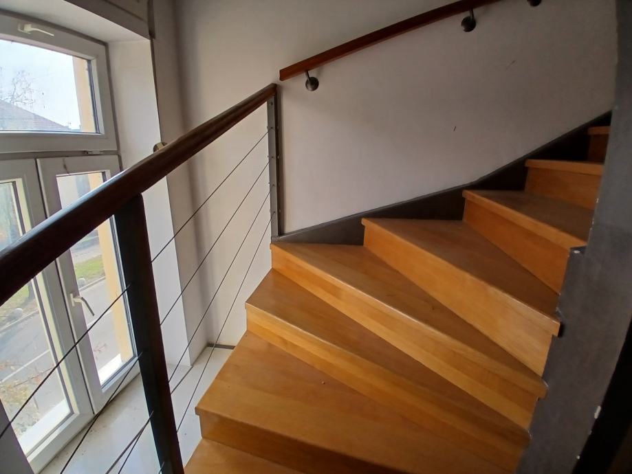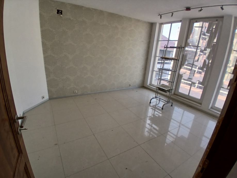 Dvoetažni stan praktičnog rasporeda prostorija u stambenoj zgradi građenoj 1940.godine u centru grada Osijeka. Stan je kompletno adaptiran unazad nekoliko godina. Adaptacija je obuhvatila nove cijevi i instalacije, novu stolariju u cijelom stambenom prostoru, nova keramika, obrada i ličenje zidova (tavanski prostor je preuređen u stambeni). Stan se nalazi na drugome katu i potkrovlju stambene zgrade. Površina stana je 156,82 m2, a sastoji se od hodnika, kuhinje, kupatila sobe i dnevnog boravka na drugom katu te galerije koju je moguće pregraditi u dvije odvojene sobe. U stanu je centralno gradsko grijanje (po sobama). U kompletnom stanu je postavljena PVC stolarija. Zgrada u kojoj se stan nalazi redovito se održava (krov je obnovljen prije 5 godina, stavljena je nova fasada). Ispred zgrade nalazi se više gradskih parking mjesta na koja se može parkirati sa stanarskom parking kartom.