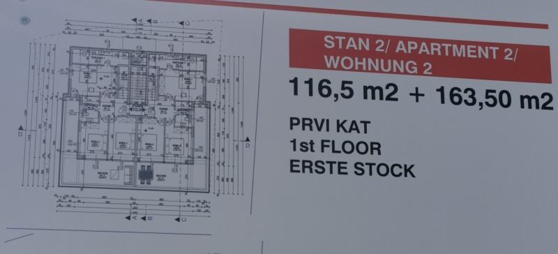Pogled na more, mirna lokacija, sastoji se od prvog kata gdje su smješte tri spavaće sobe,sa jednom master sobom, te drugog kata gdje se nalazi dnevni boravak i kupaonicom, kuhinja sa blagavaonom, kupaonica, hodnik, spremište, velike terase, dva parkirna mjesta!!