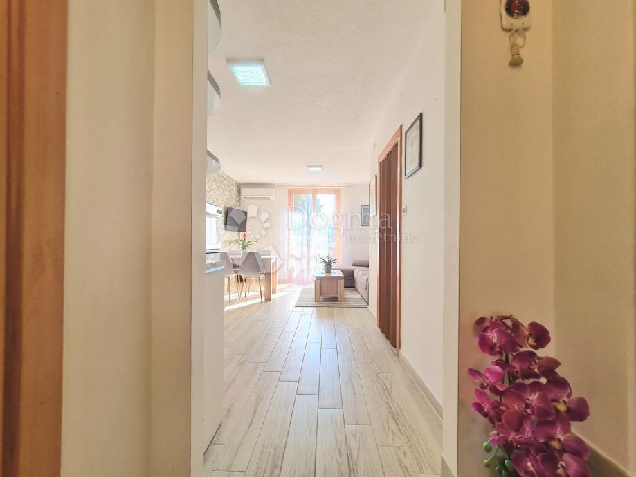 Posebnu vrijednost daje mu loggia u prizemlju s pogledom na more, idealna za jutarnju kavu ili večernje opuštanje. Osim toga, vlasnicima je na raspolaganju i mali vrt ispred zgrade, savršen za zelenilo ili privatni kutak na otvorenom.