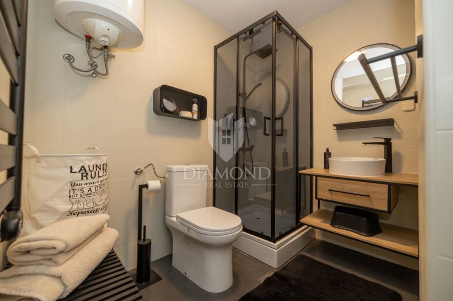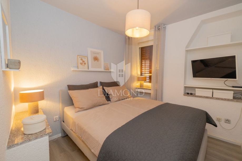 Stan je u potpunosti obnovljen tijekom 2023 i 2024. godine s novim električnim instalacijama, dvostrukim ostakljenjem, kvalitetnim podovima i modernim namještajem koji je uključen u cijenu. Opremljen je klima uređajima na obje etaže, brzim optičkim internetom brzine 1 Gbit/s, pametnim televizorima te suvremenim NUKI sustavom zaključavanja, što ga čini idealnim i za privatno korištenje i za turistički najam visoke kategorije.