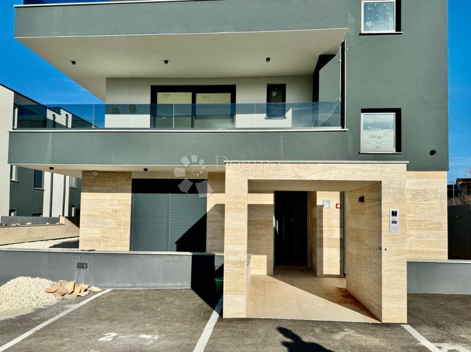Na izvrsnoj lokaciji u Medulinu, u blizini škole, vrtića, trgovina, banke, restorana i kafića, smještena je ova novoizgrađena zgrada na parceli površine 323 m². Riječ je o modernoj zgradi koja se sastoji od dva stana ukupne neto površine 250 m². Jedan stan je dvoetažni i nalazi se u prizemlju i na prvom katu, dok se drugi stan nalazi na drugom katu. Svakom stanu pripadaju četiri parkirna mjesta.