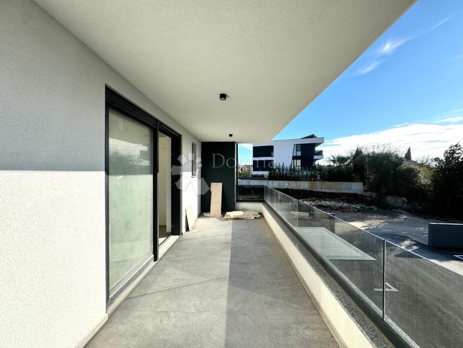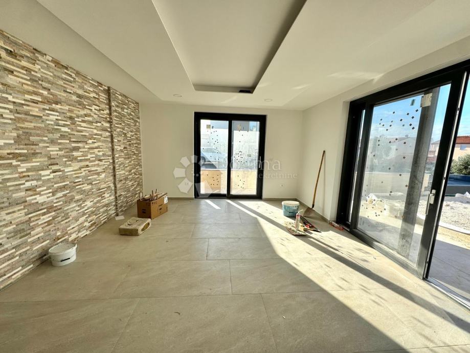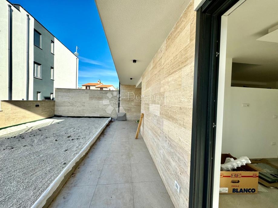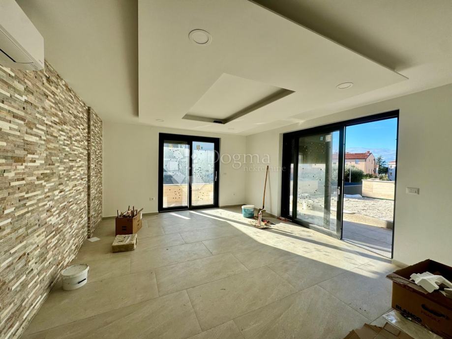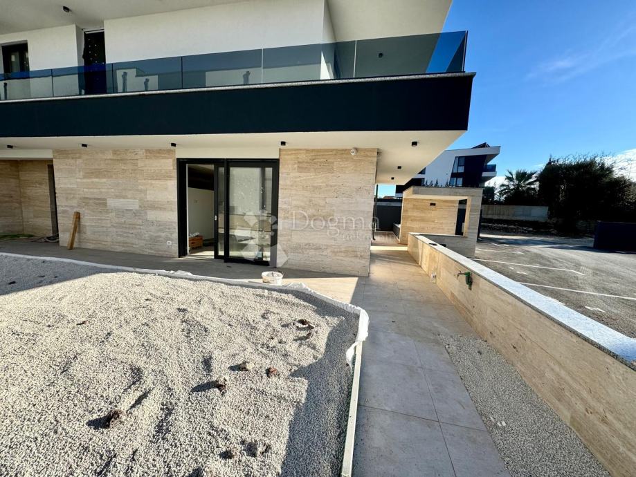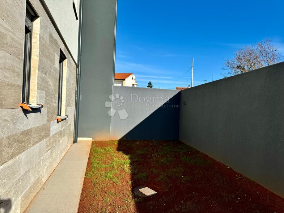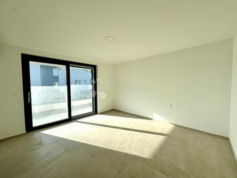 Stan u prizemlju, površine 180 m², prostire se na dvije etaže. U prizemlju se nalaze prostrani dnevni boravak s izlazom na natkrivenu terasu, jednu spavaća soba, kupaonica, potpuno opremljena kuhinja koja je ostavljena za osobni odabir budućeg vlasnika te blagovaonica i ostava. Na terasi se nalazi bazen dimenzija 3x8 metara, opremljen masažerima i ugrađenim jacuzzijem, koji se kasnije može preurediti u zatvoreni wellness prostor s dodatkom saune.