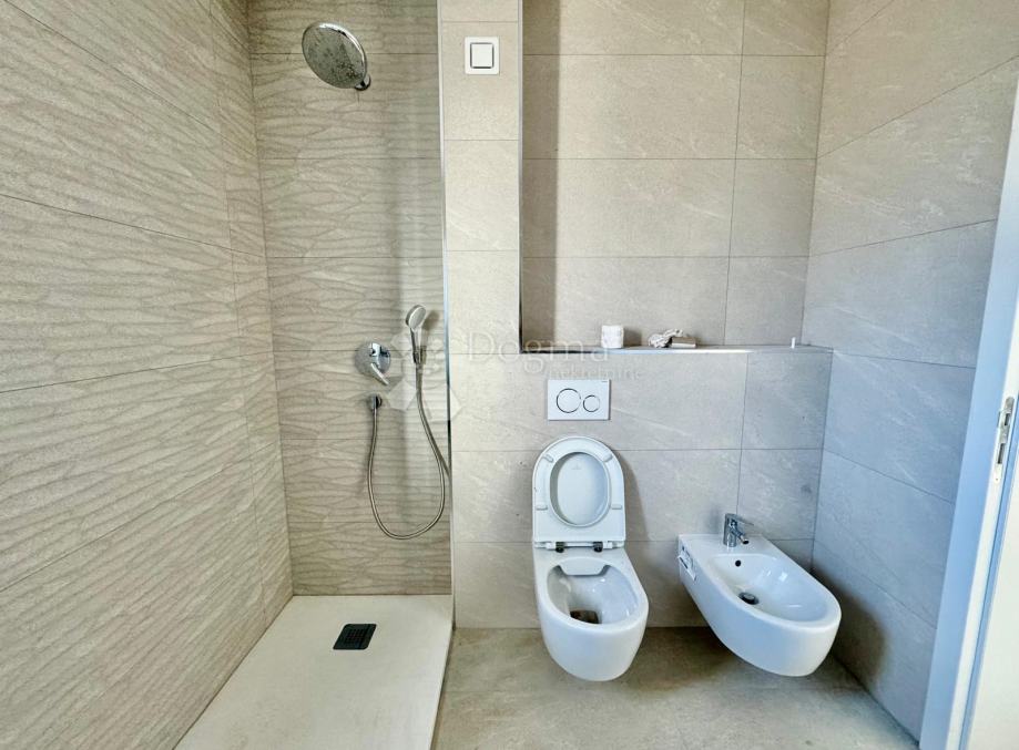 Stan je opremljen podnim grijanjem u cijelom prostoru, električnim roletama i suvremenim sustavima za grijanje i hlađenje, čime se osigurava maksimalna udobnost tijekom cijele godine. Izvrsna kombinacija luksuza i praktičnosti čini ovu nekretninu idealnim izborom za obiteljski život ili kao investiciju za turistički najam.
