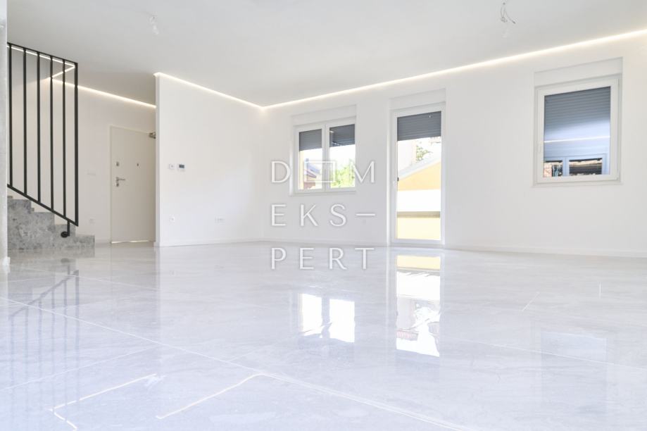 Prodaje se dvoetažni četverosoban stan s vrtom i krovnom terasom ukupne površine 135.98 m² u Dugom Selu.