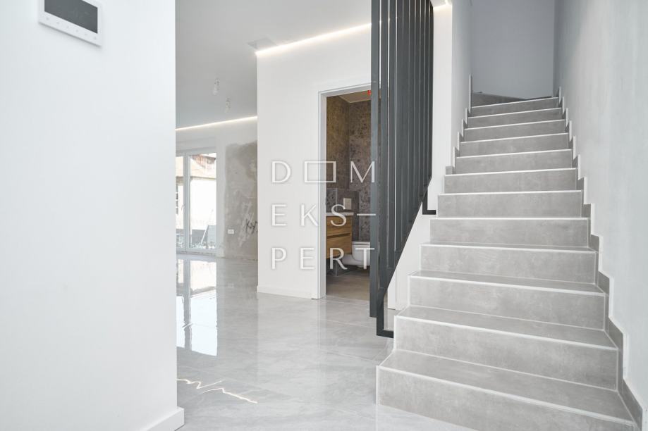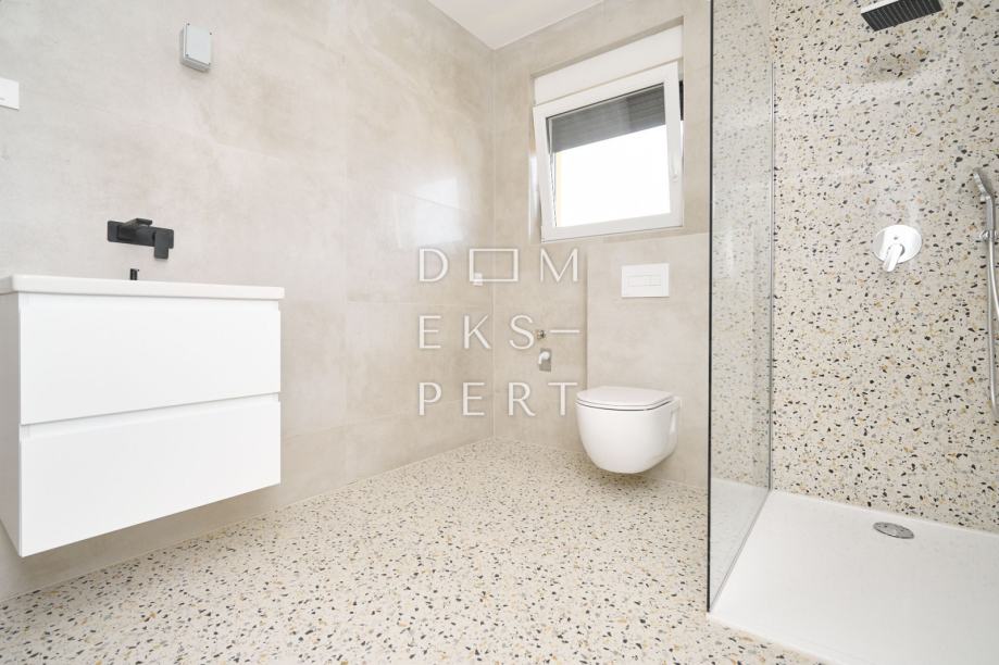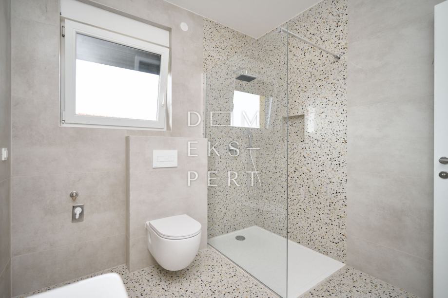 Vanjska stolarija je PVC s troslojnim staklima i 6 komora, vanjske antracit, unutra bijele boje. Svaki prozor ima aluminijske rolete na elektromotore. Ulazna vrata su protuprovalna.