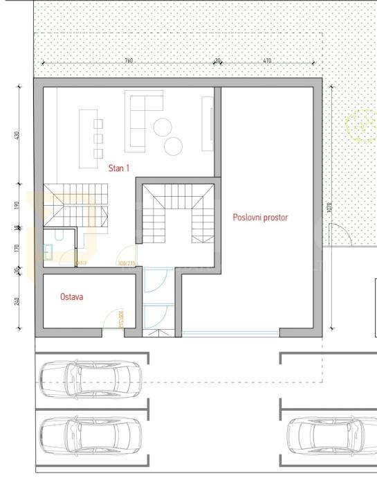 Ne propustite priliku za kupnju stana vaših snova po realnoj cijeni. Na skicama označen kao stan 1. na 1. katu.