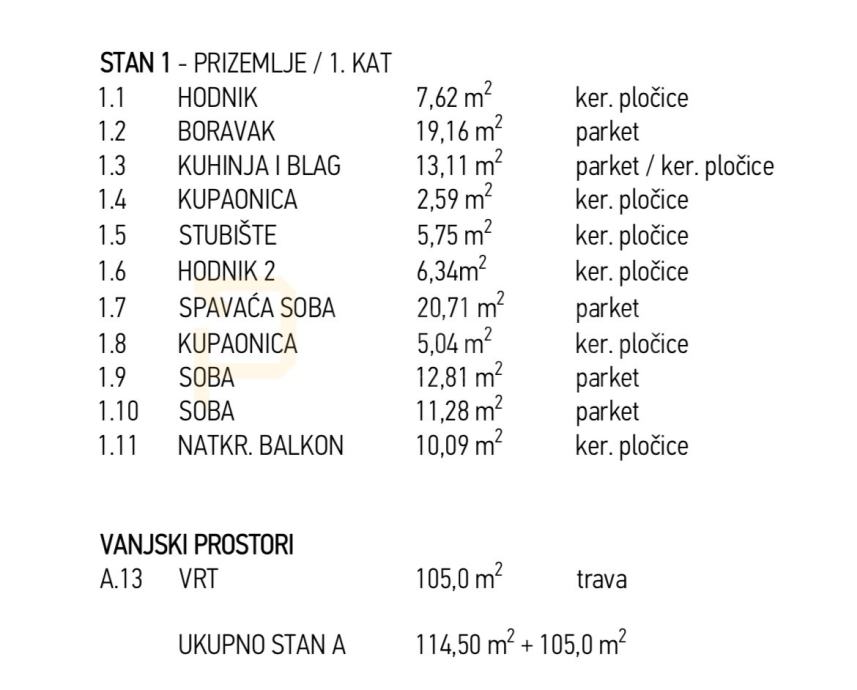 Dvoetažni stan u novogradnji, prizemlje 114 m2 + vrt 105 m2 (prodaja)