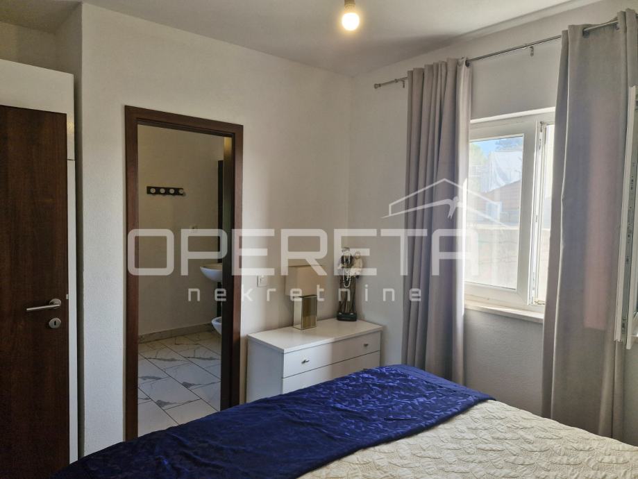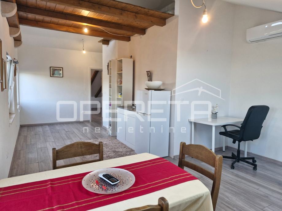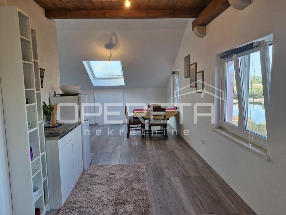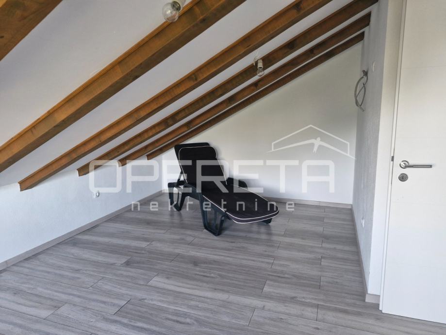 Donja etaža obuhvaća dnevni boravak s kuhinjom, spavaću sobu s kupaonicom, dodatni toalet i balkon, dok gornja etaža sadrži dnevni prostor s kuhinjom, spavaću sobu, kupaonicu, spremište i galeriju pogodnu za dodatnu spavaonicu ili višenamjenski prostor. Nekretnina je useljiva i funkcionalna, dok je dio prostorija ostavljen u završnoj fazi, što omogućuje budućem vlasniku završno uređenje prema vlastitim željama.